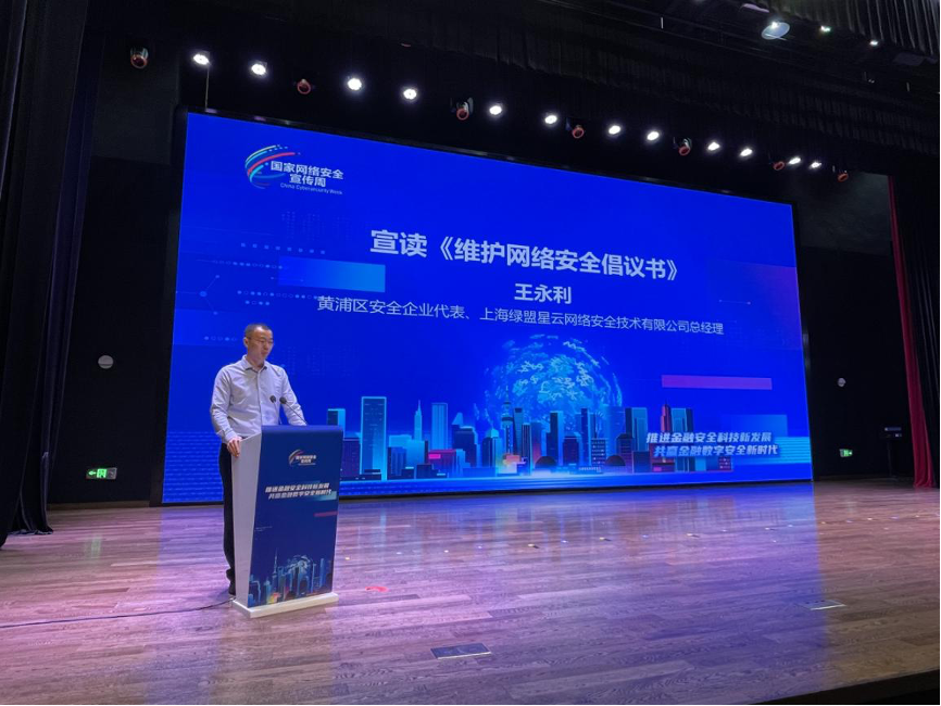 会上,绿盟科技集团上海办事处首席代表王永利作为网络安全企业代表宣读《维护网络安全倡议书》。