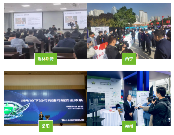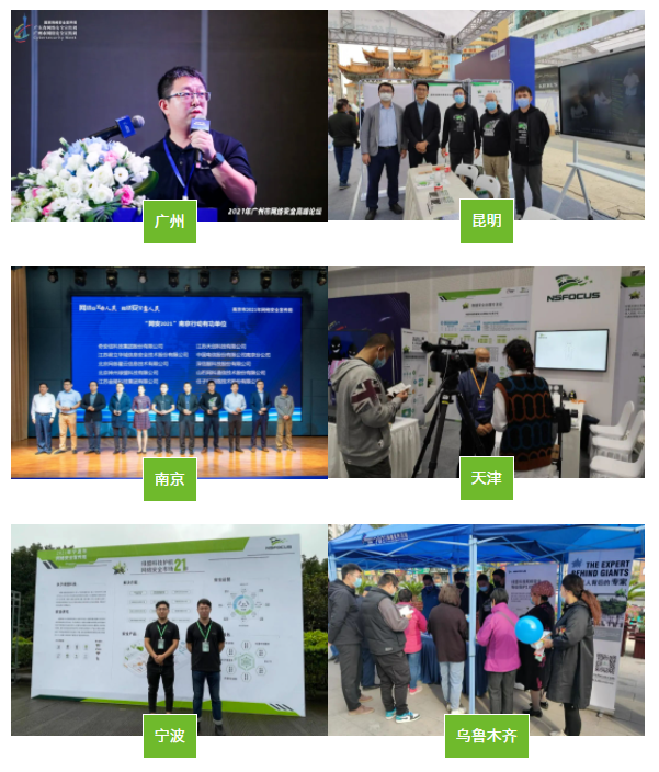 2021年国家网络安全宣传周,绿盟科技联动全国45省市为网络安全献力,用丰富的形式宣传网络安全理念、普及网络安全知识、讲解网络安全法规、推广网络安全技能。