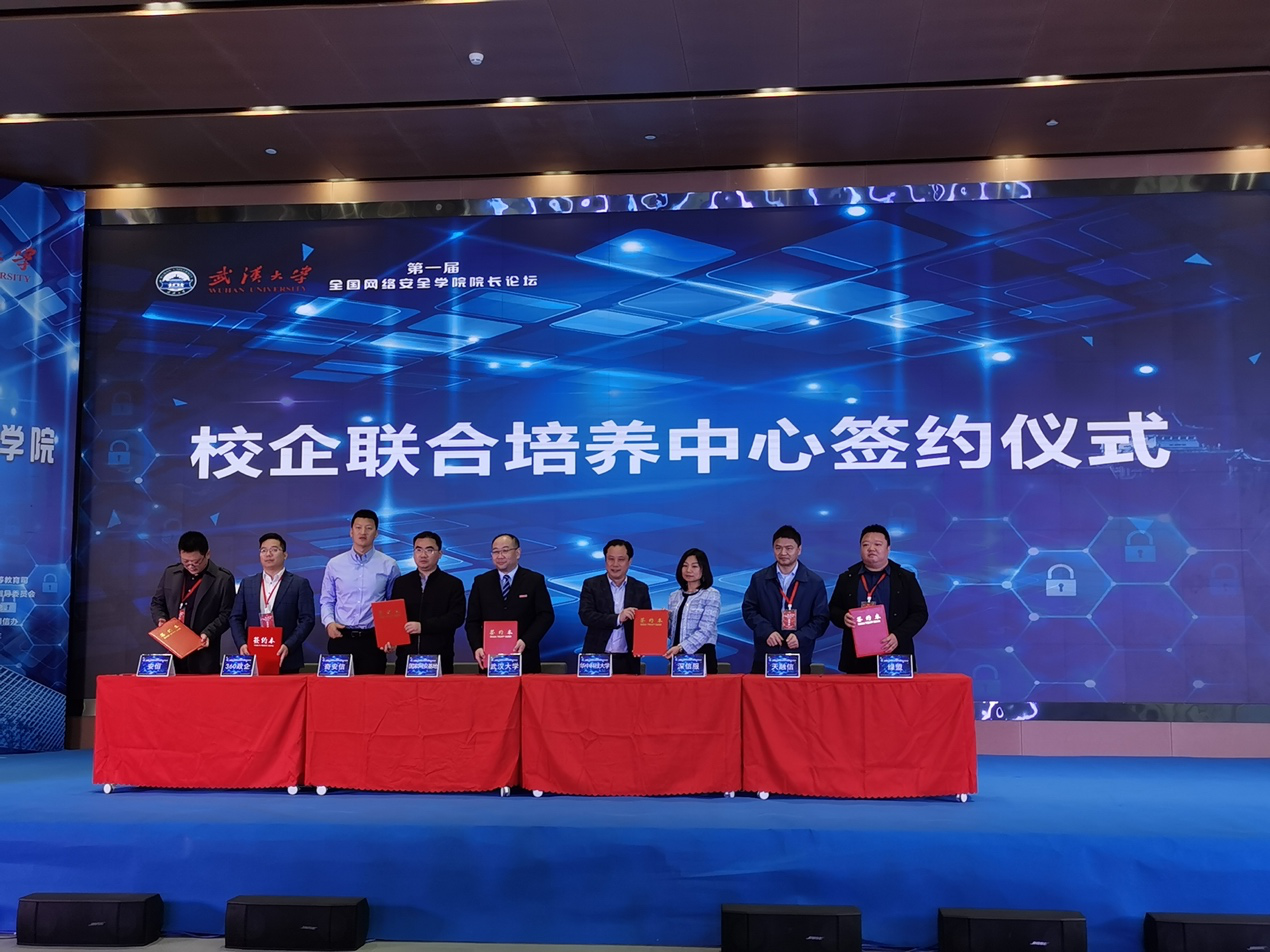 会议期间,绿盟科技还作为企业代表与国家网络安全人才与创新基地、武汉大学国家网络安全学院、华中科技大学网络空间安全学院进行战略合作签约。签约各方将在学科建设、师资培养、实践实训、共建一流网络安全联合实验室等多方面展开深度合作,以进一步加强顶层设计、支持一流网络安全学院建设、强化高层次网络安全人才培养。