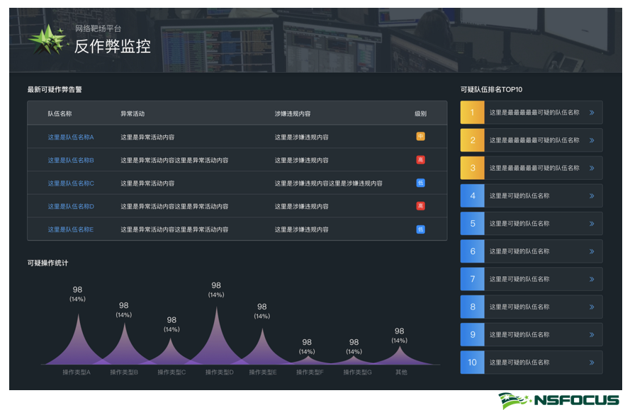 教师同样可以对竞赛场景、竞赛题库、计分设置、虚拟机模板等内容进行管理,并可在参赛人员出现异常行为时进行分析和控制。