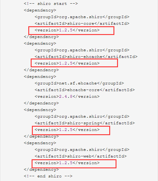 在config\pom.xml的version标签中查看当前使用的shiro版本号:
