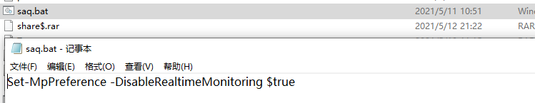 某案例中,攻击者通过powershell命令禁用Windows Defender的实时保护: