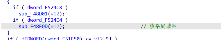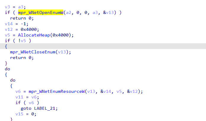 在加密的过程中病毒有枚举局域网计算机的行为,主要是查找局域网共享,尝试加密共享文件。