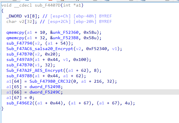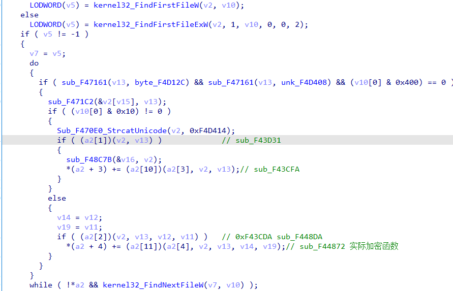 病毒首先清空回收站,关闭清单中的相关服务,杀死清单中进程,然后在激活相关权限的情况下,开始加密功能。主要使用FindFirstFile 和FindNextFile来查找所有文件,使用salsa20+AES的算法进行文件加密。