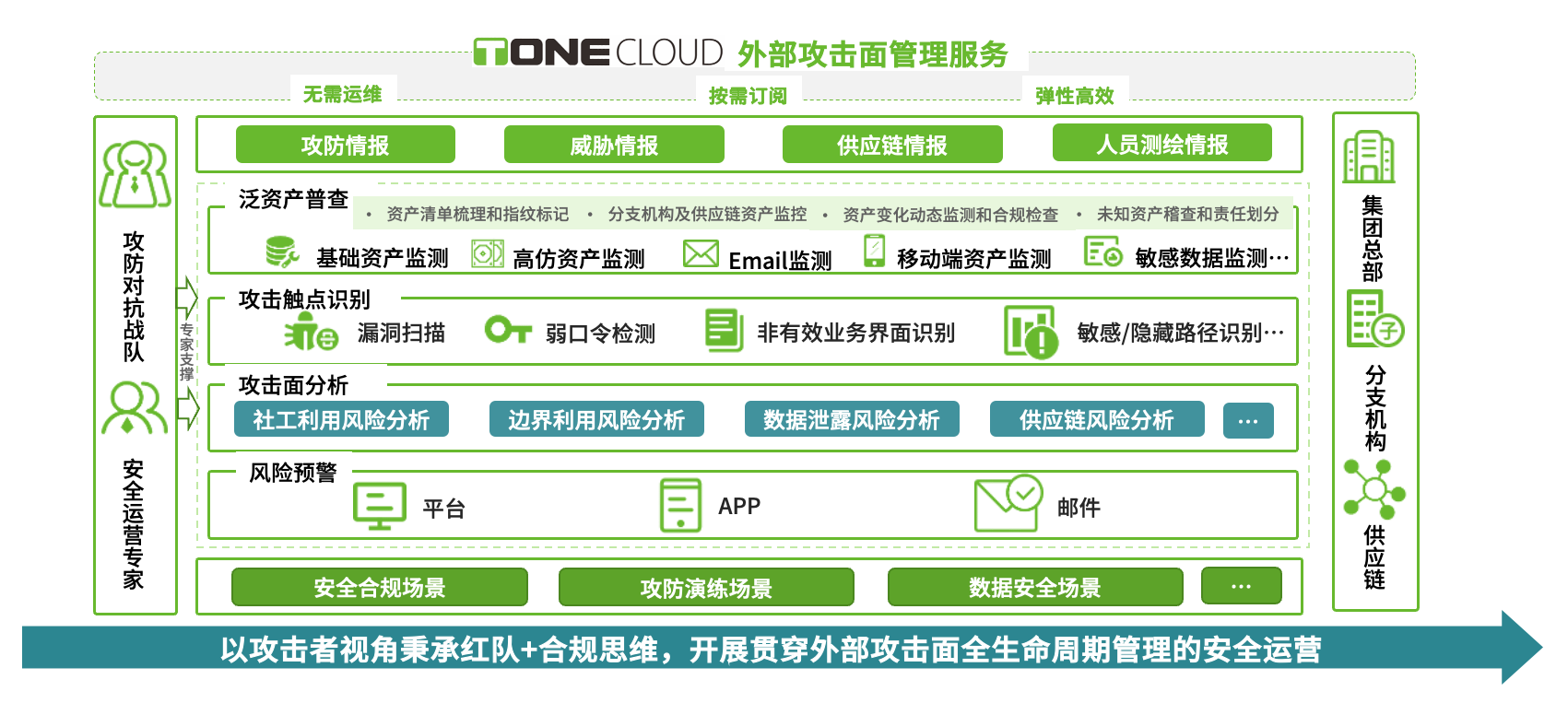 绿盟外部攻击面管理服务(EASM)是一款集泛资产普查、攻击触点识别、攻击面分析、风险预警为一体的SaaS服务。服务以攻击者视角监控本级单位、分支机构、供应链暴露在互联网侧的泛资产及其关联的外部攻击触点。同时,系统自动结合知识图谱,主动映射攻击面,分析并预测易被攻击者利用的安全风险,并及时进行风险预警,辅助组织完成风险处置闭环。